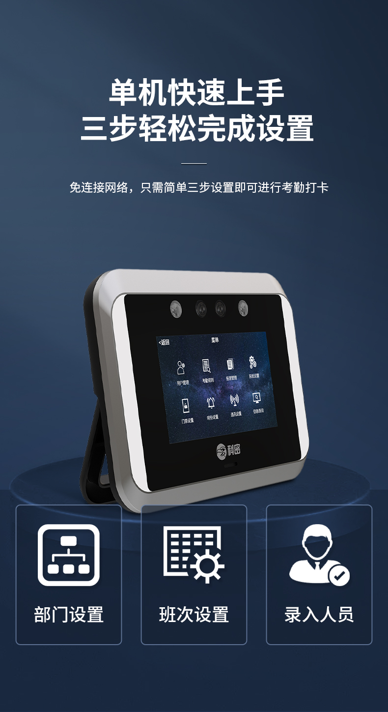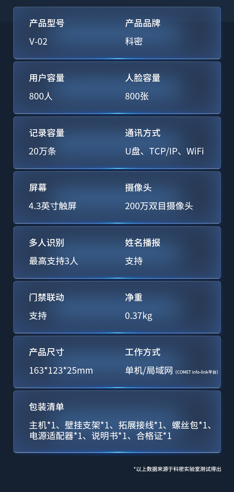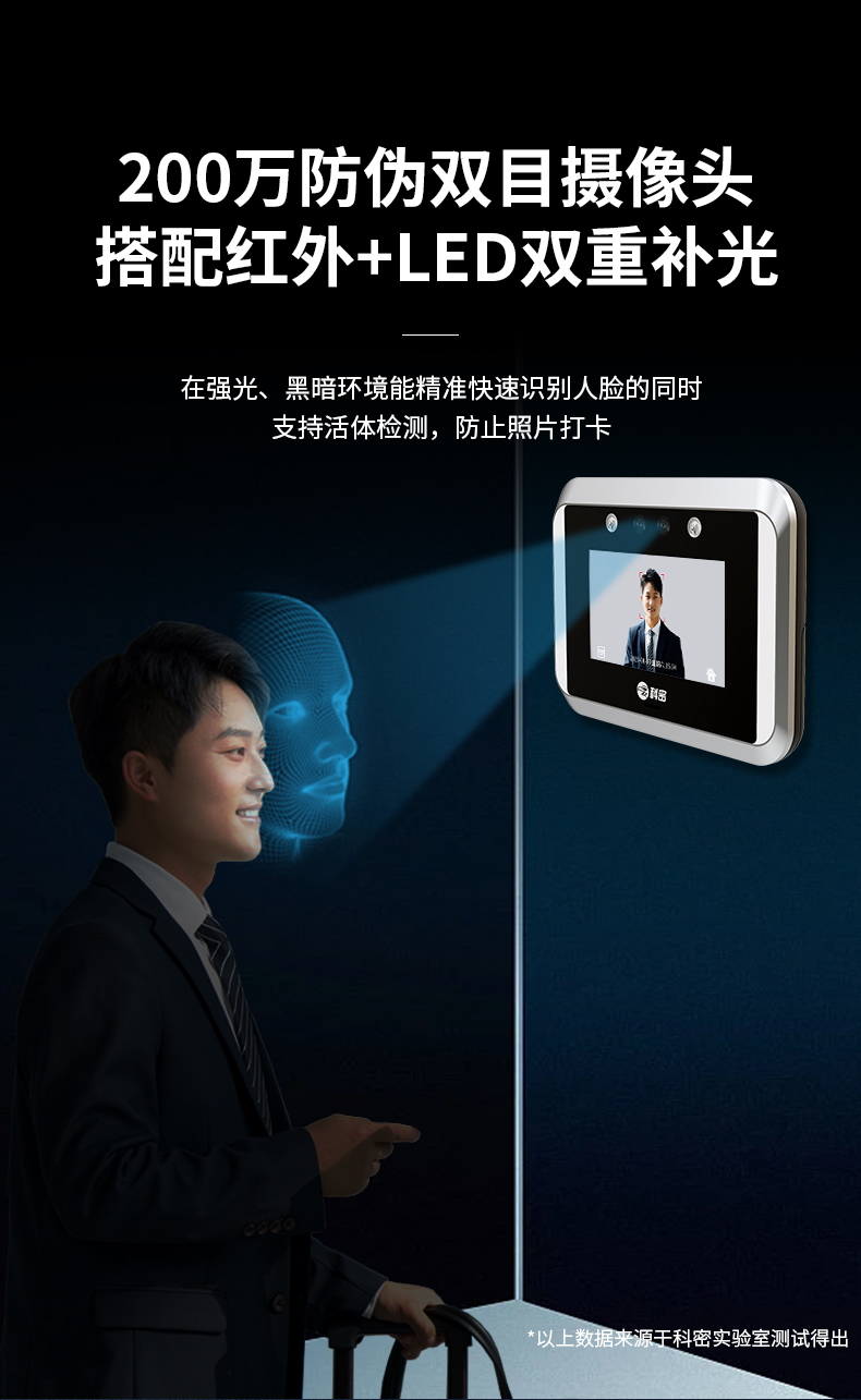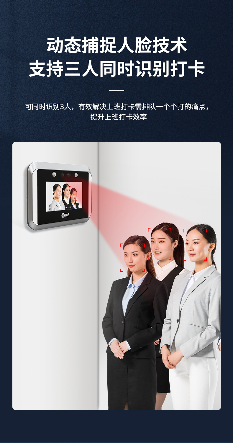 科密(comet) 動(dòng)態(tài)人臉識(shí)別考勤機(jī) 無(wú)接觸多人同時(shí)打卡機(jī) wifi連接 4.3英寸高清大屏 考勤門(mén)禁一體打卡 V-02